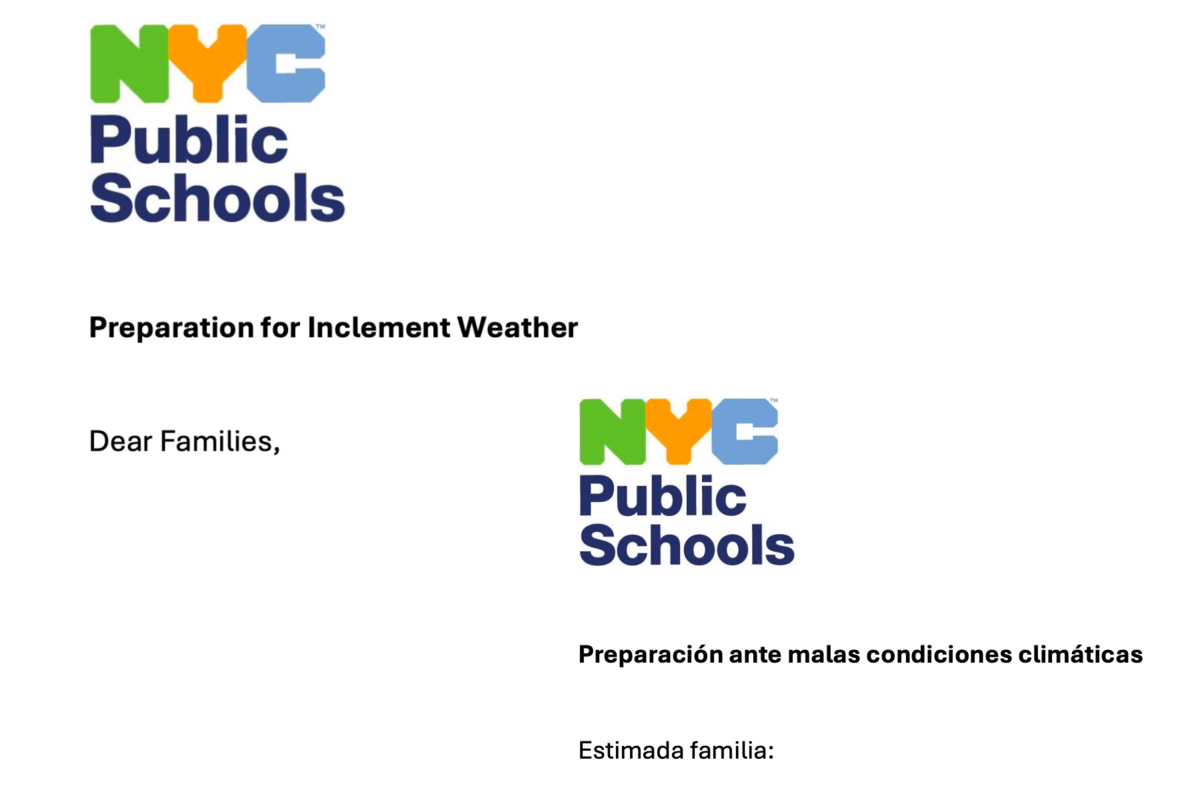 Your school will stay in close communication with you regarding the upcoming inclement weather